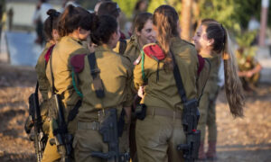 একজন নারী ইসরায়েলি সৈন্য গাজায় ইসরায়েলি সেনাবাহিনী কর্তৃক অপহৃত দুই ফিলিস্তিনি কিশোরকে পাহারা দিচ্ছে; ওই নারী সেনা দুই কিশোরকে তাদের...